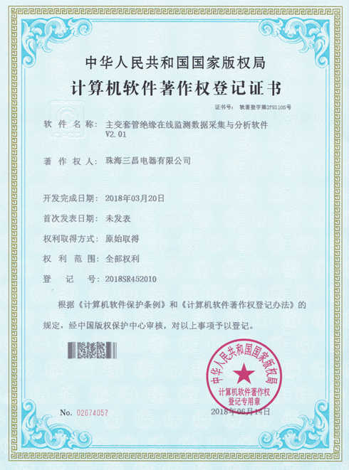 计算机软件著作权:主变套管绝缘在线监测数据采集与分析软件