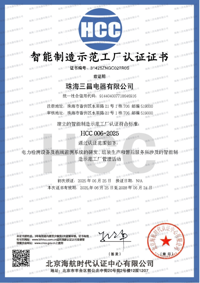 智能制造示范工厂认证证书