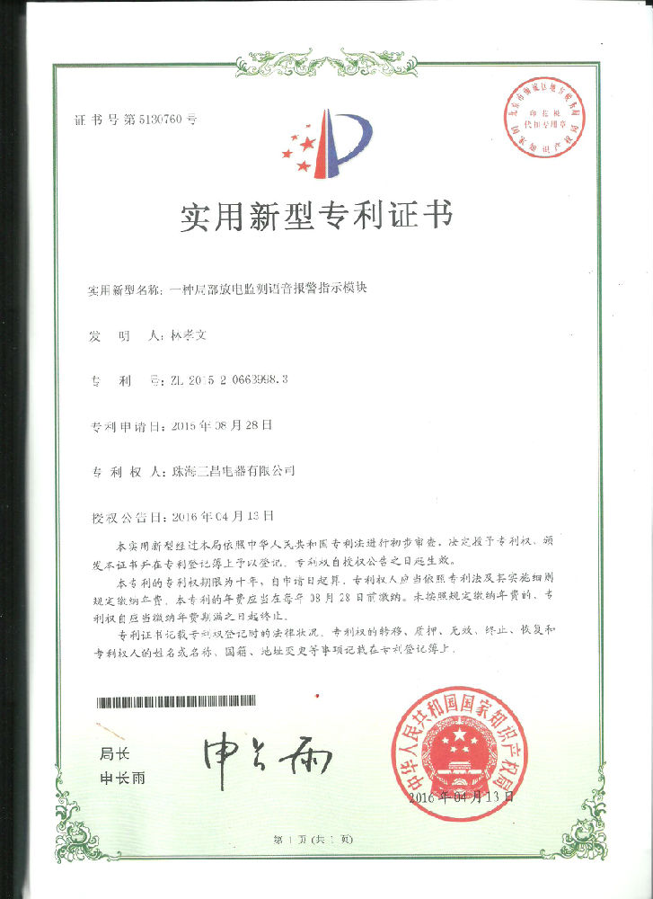 实用新型专利:一种局部放电监测语音报警指示模块